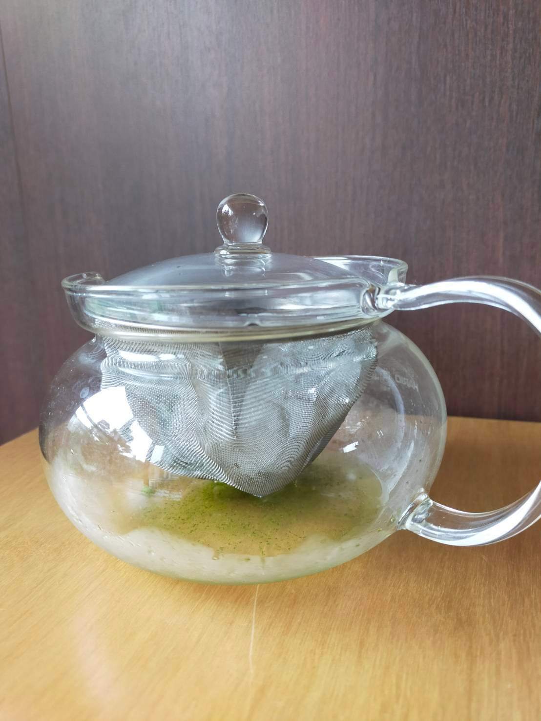 急ぎで水出し茶を作りたいときも、ちょっと多めの茶葉(深蒸し茶を使っています)と抹茶を足して淹れてしまうときもあります。