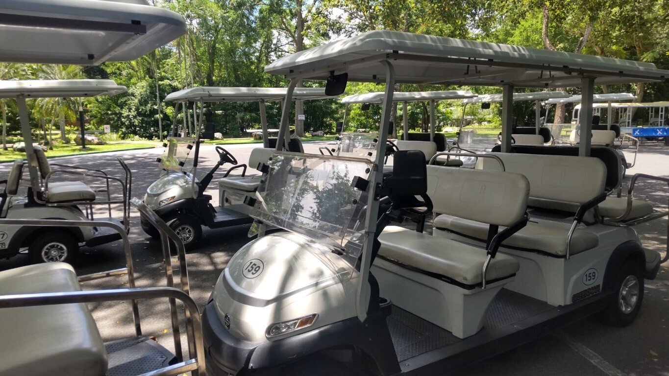自由に乗り回したい場合は、ゴルフカートを借りることもできます。トラムが行けないエリアも回れます。
