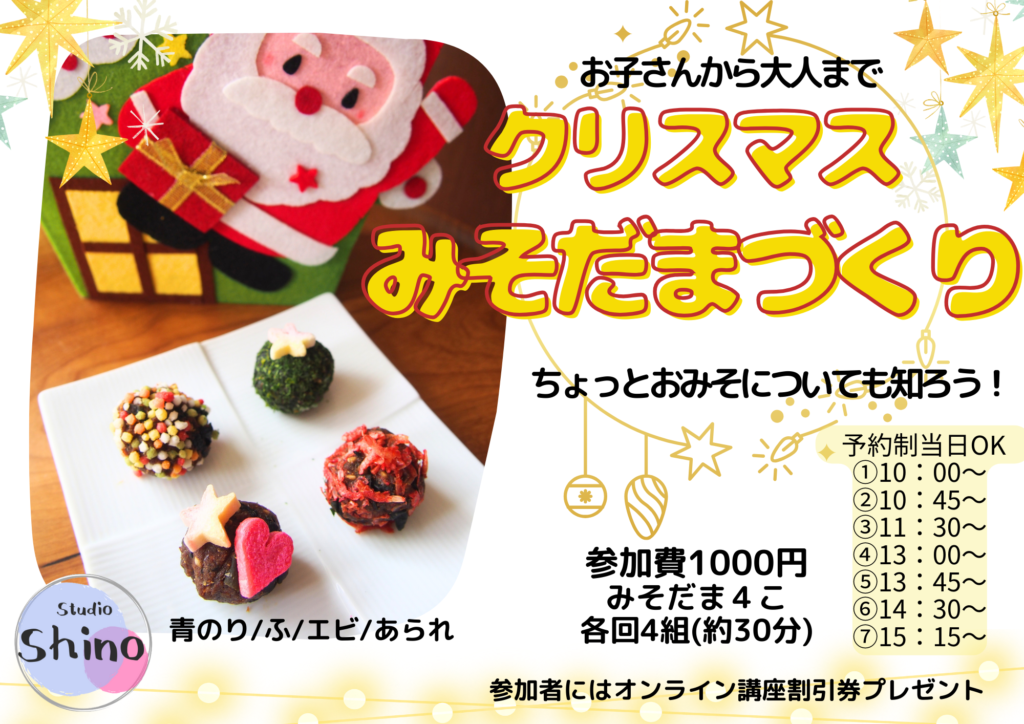 私はクリスマスみそ玉のワークショップで参戦します![]()