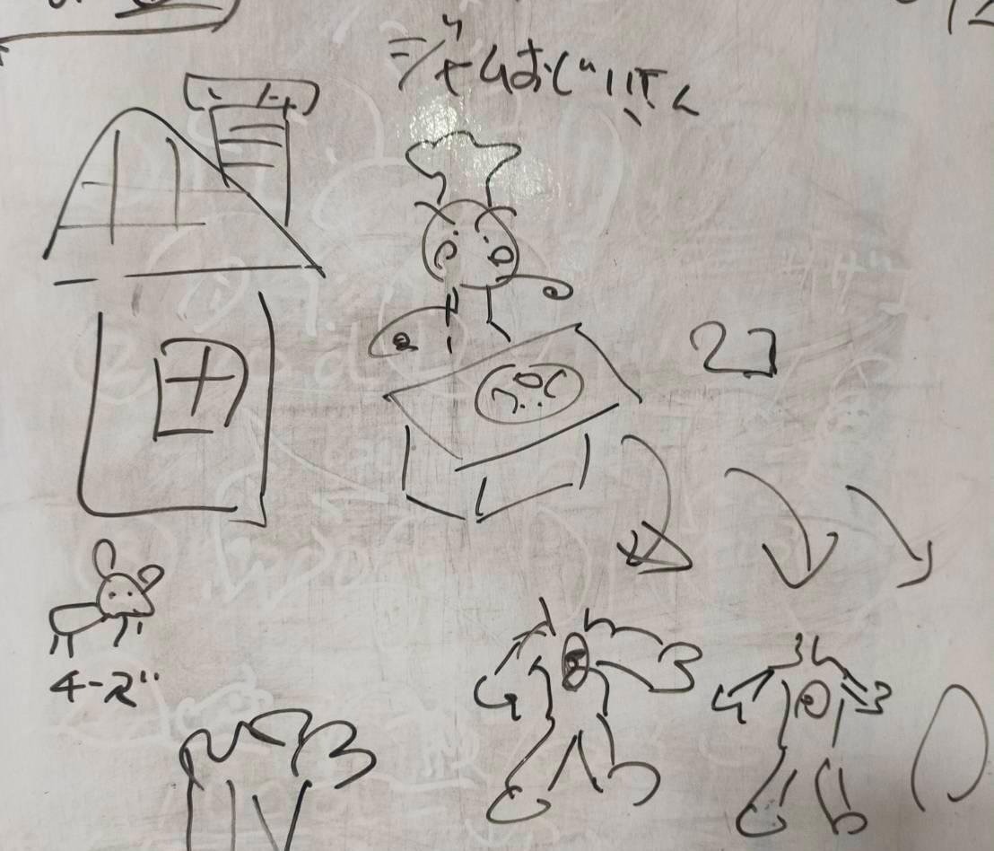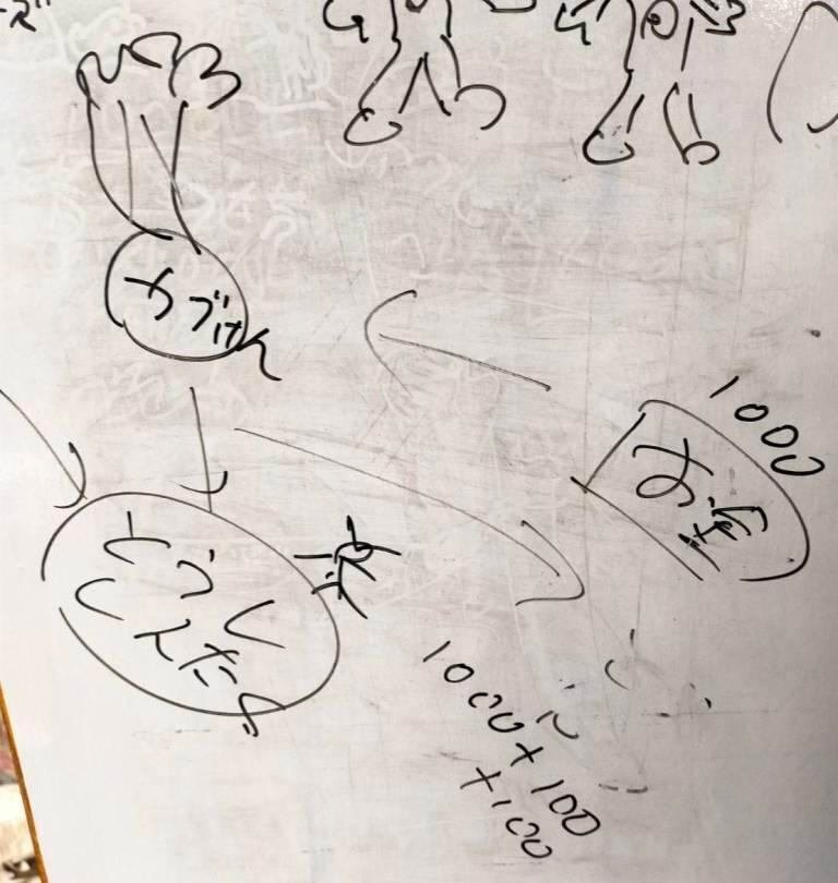 そこで、その場にいた旦那さんが戸の裏のホワイトボードに絵を描きながら説明し始めました。