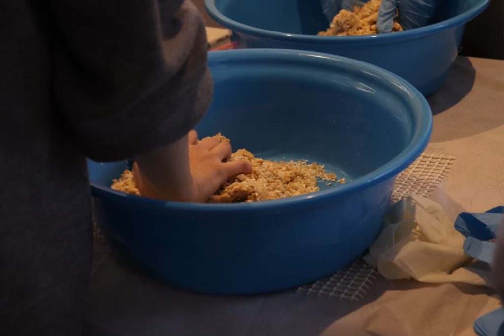 米麹と麦麹の合わせ味噌(約1キロ)作ってお持ち帰り。