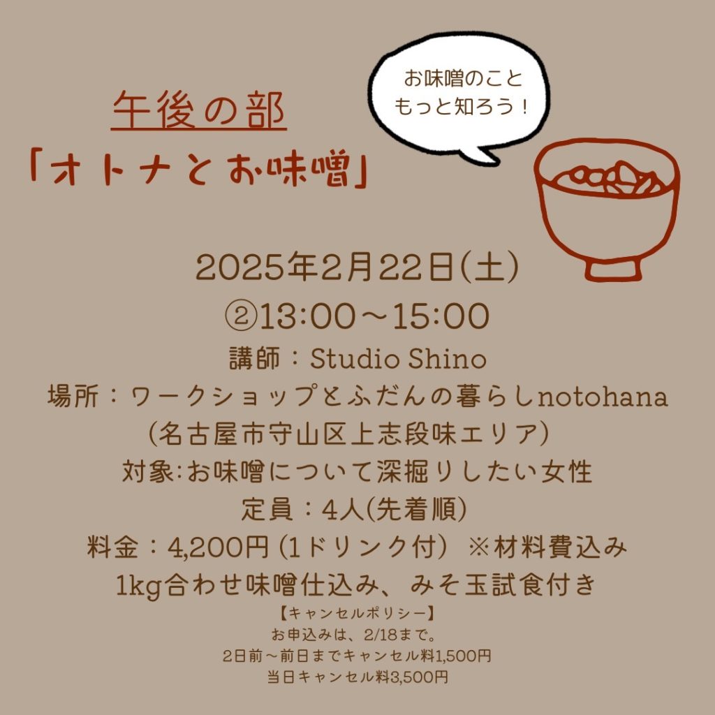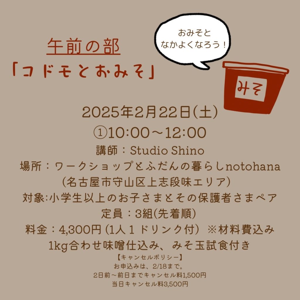 【講座】2/22名古屋市守山 味噌作りワークショップ 2025.01.262025.02.02 スポンサーリンク 今年は一緒にお味噌を愛でてみませんか?🥰 お味噌を愛でる会2025年2月22日㈯今年も名古屋市守山ノトハナさんにてお味噌作りのワークショップ開催しますー! ノトハナさんがネーミングしてくれました🤣※画像はノトハナさんよりお借りしました 今年はお子さんも参加できる部があります!詳細はノトハナさんインスタをご覧ください❤️ Instagram 申込みはノトハナさんブログから、もしくはこちらのノトハナさんの申込フォームから。 お待ちしています😊