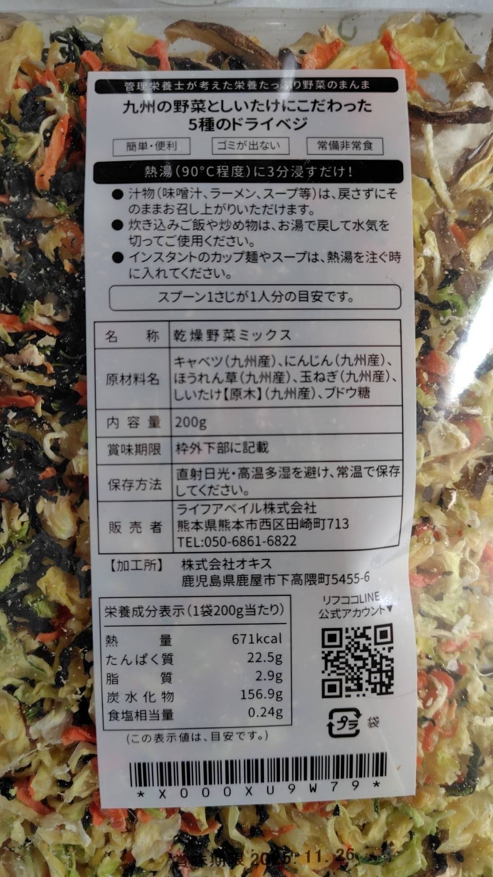 そこでおすすめなのが 「フリーズドライ野菜」