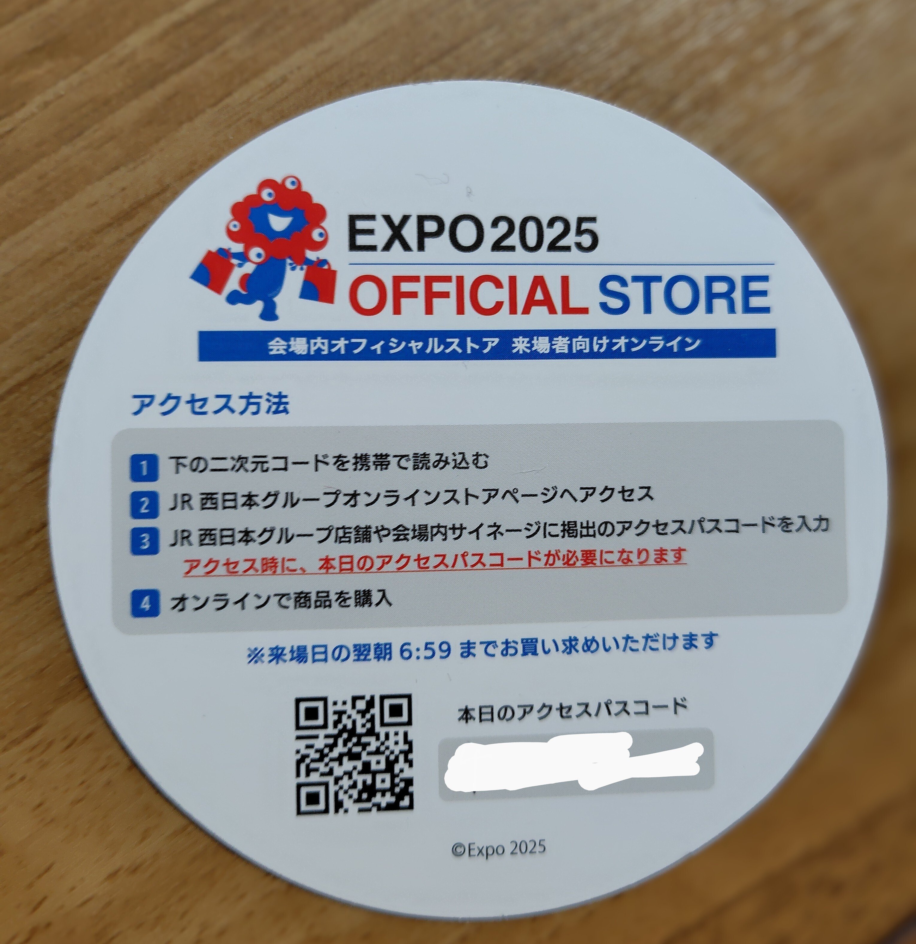 直後に、時間限定でネットで購入できます、とオンラインショップのQRを渡され、掲示されている限定パスコードをメモ。ただ、購入できるのは、翌日6:59までとのこと。帰宅が0時過ぎの私たちにはけっこうハード。