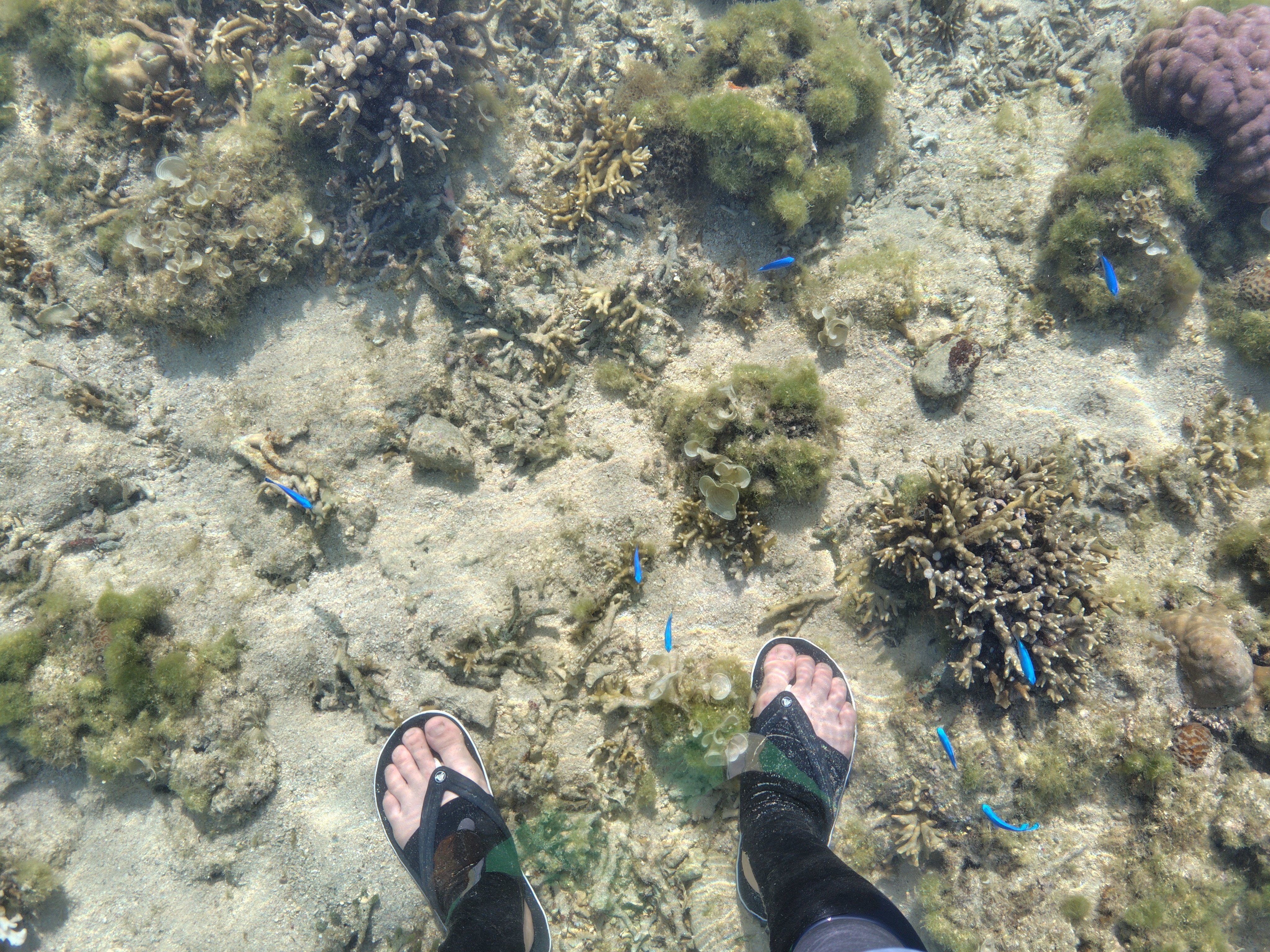 ここも水がとてもきれいで、色とりどりの魚がすぐそばにたくさんいます。
