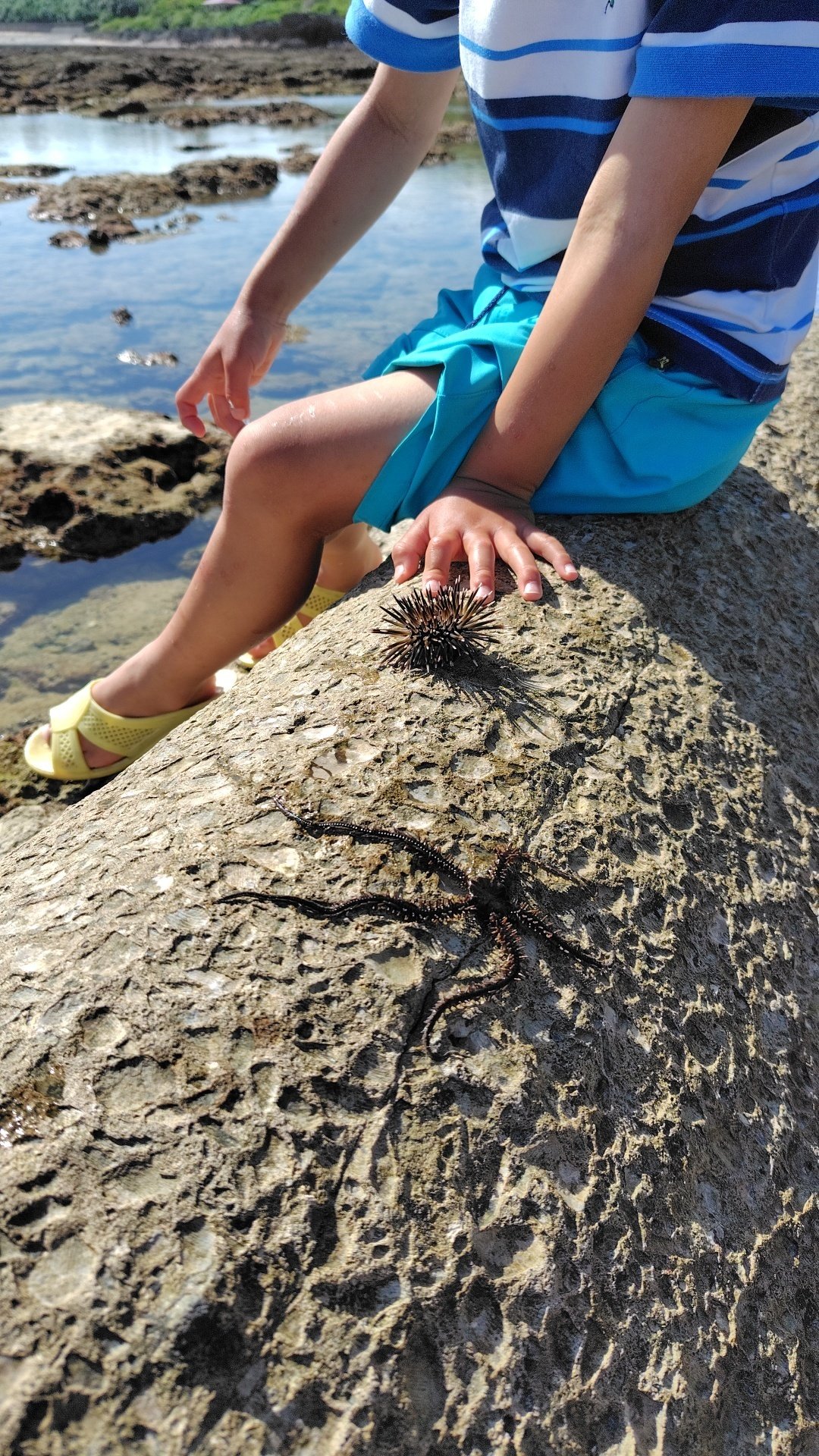 魚やカニ、ヒトデにウニなど海の生き物がたくさんで磯遊びもできます。