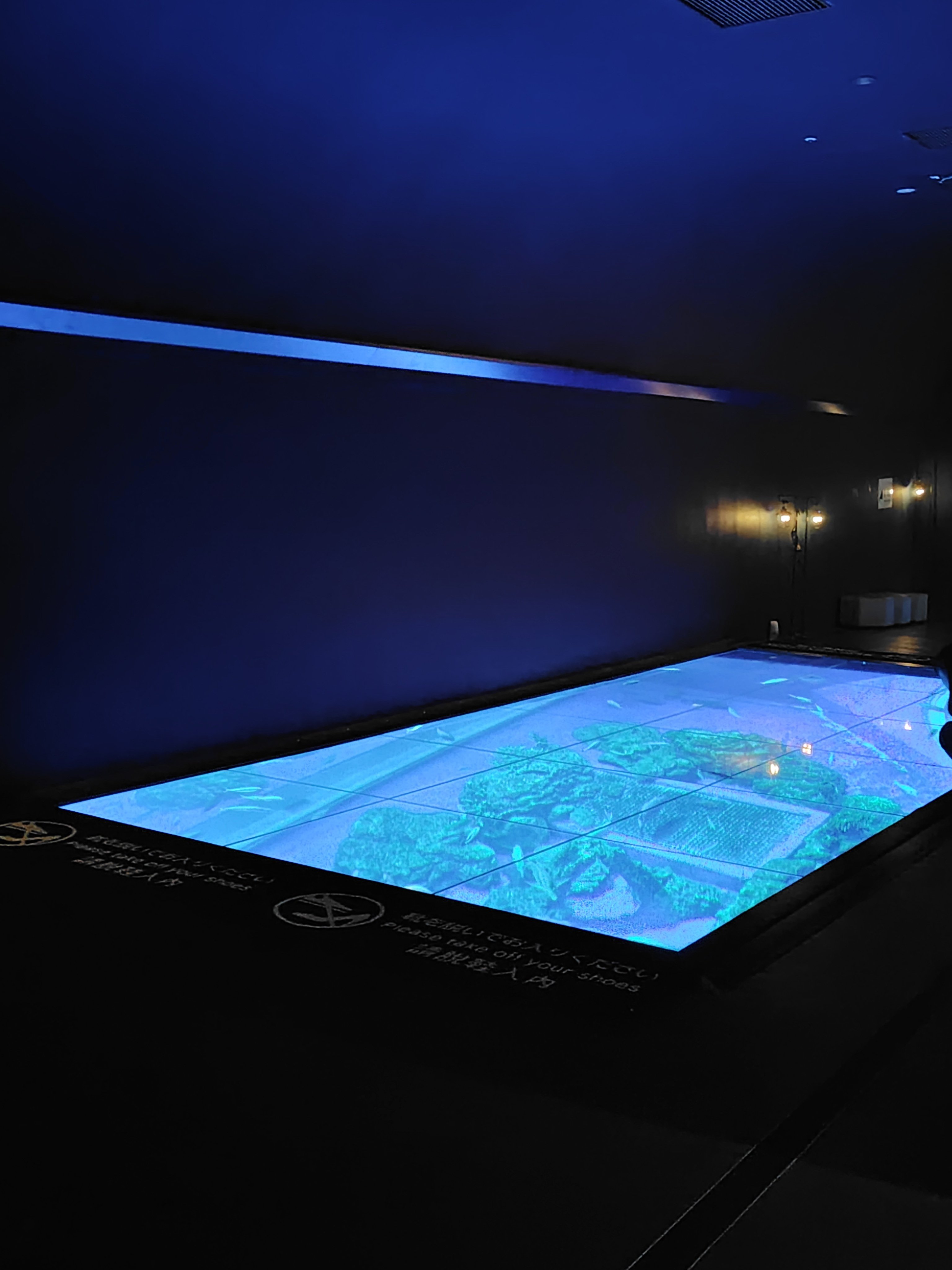 あと珍しかったのが、水槽の上を歩けるスポット。