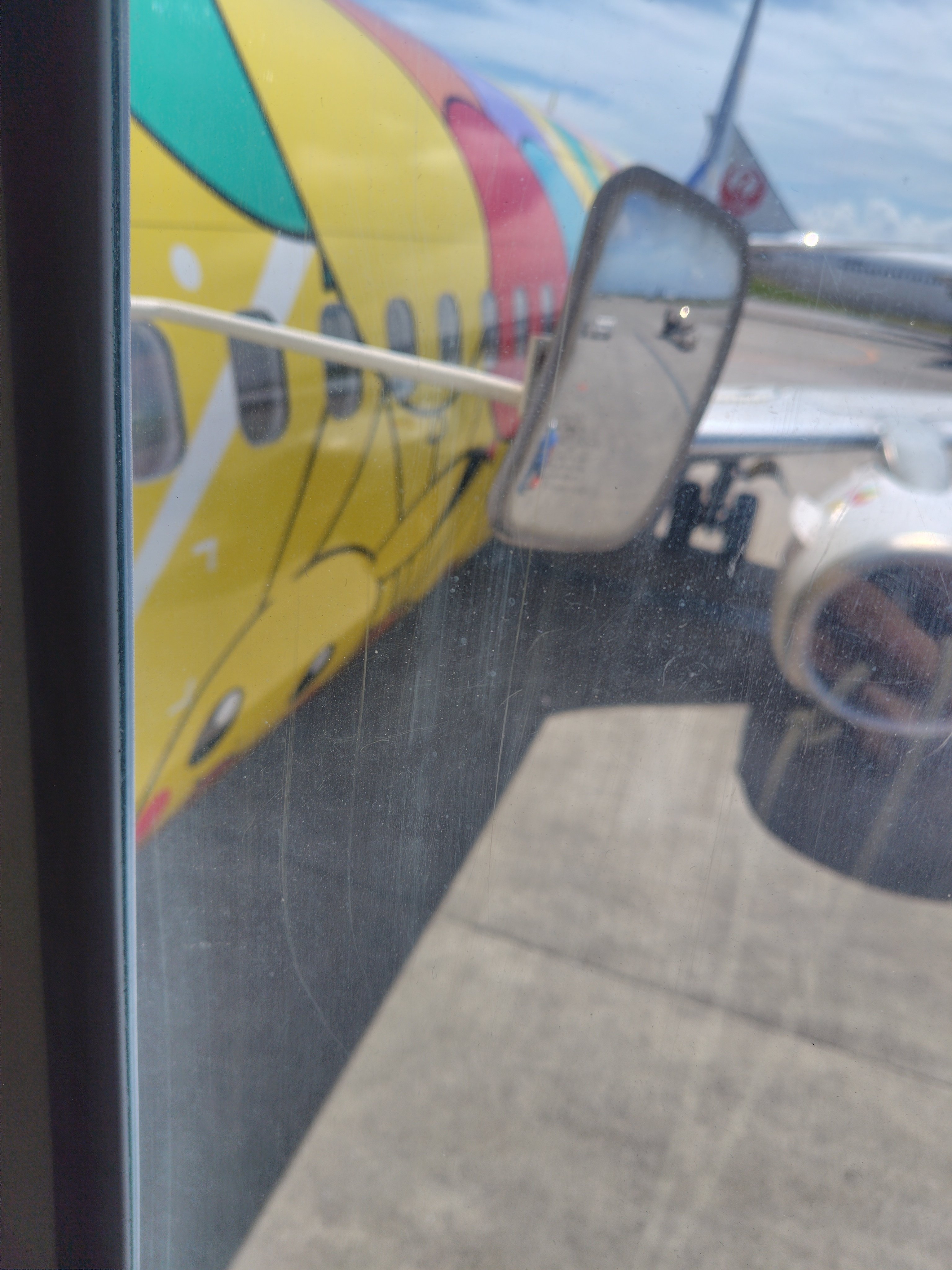 帰りの飛行機に搭乗しようと近づくと…スカイマークなのに機体が黄色い!?