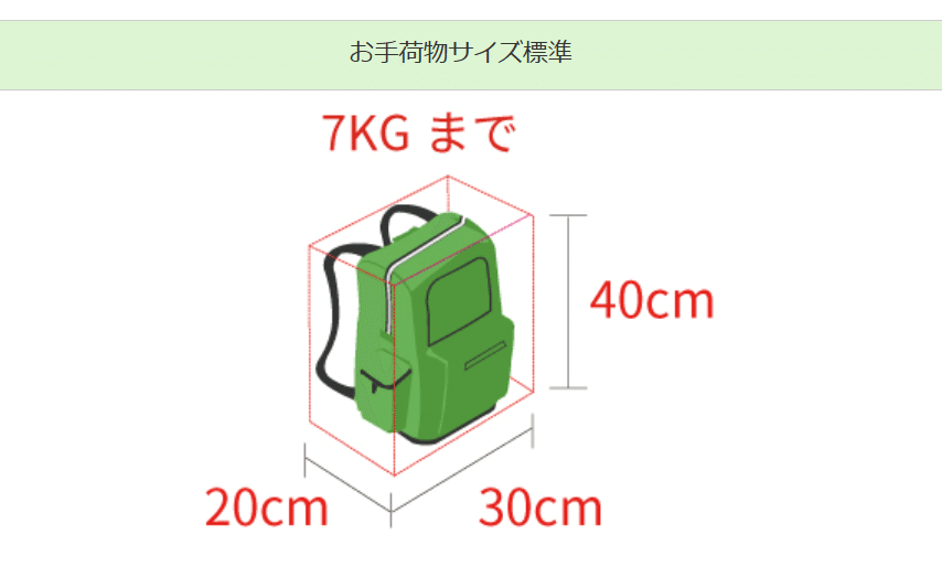 予約の数日後、色々調べてわかったのが、荷物持ち込みサイズがめっちゃくちゃ小さいです。