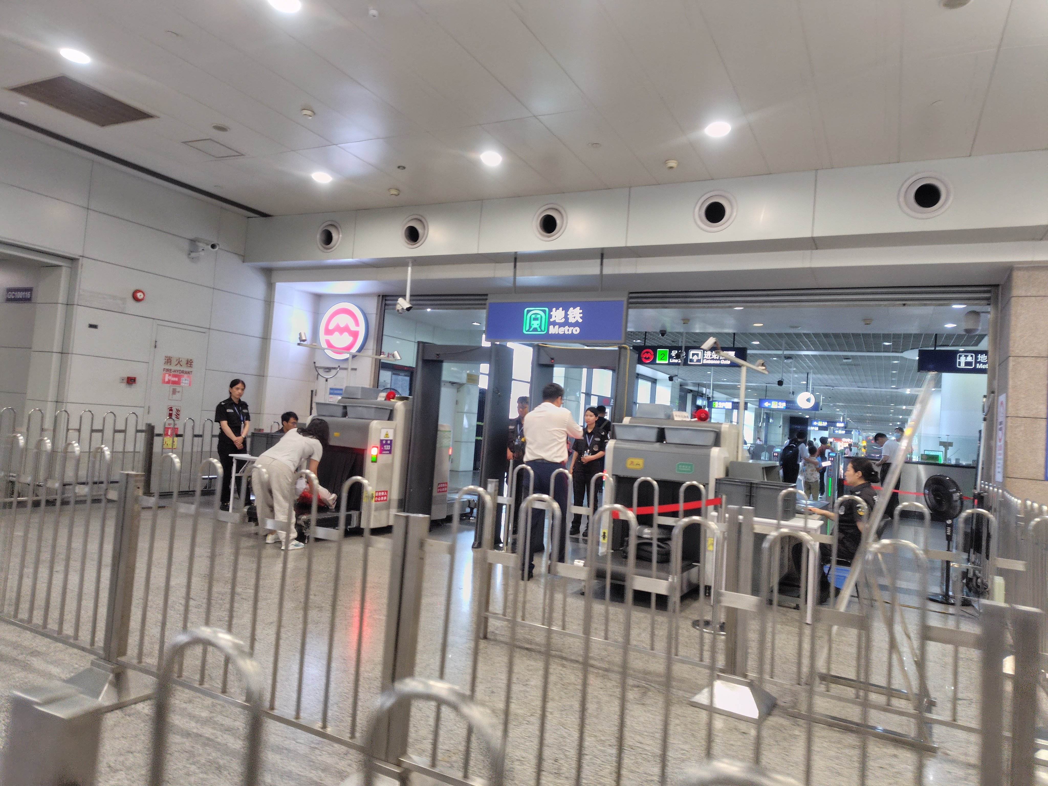 地下鉄で上海市内のホテルへ移動したかったので「地铁/Metro」と書かれた看板をもとに進むと、改札前には荷物検査ゲート。