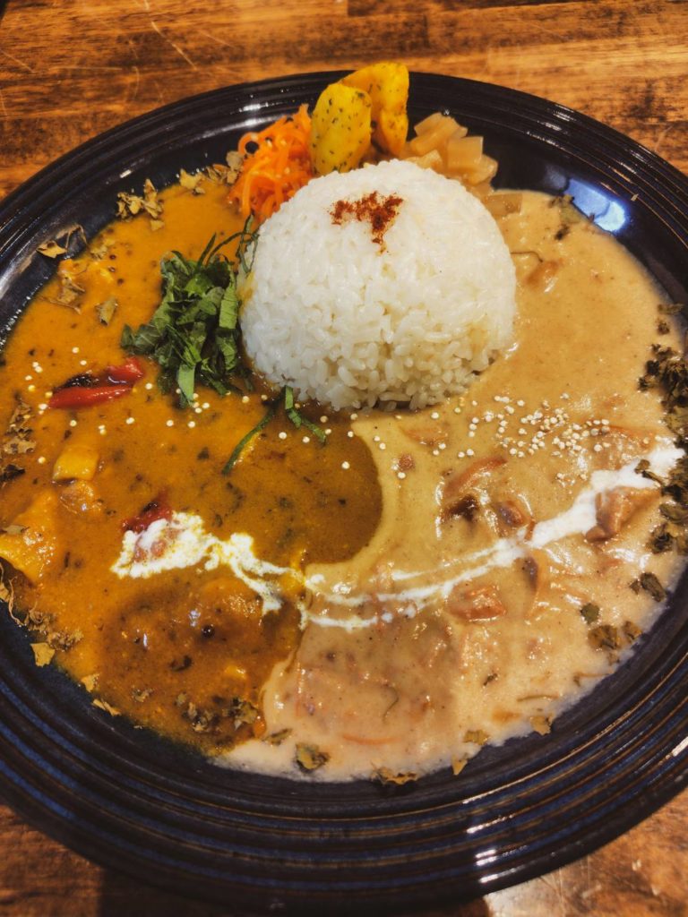 スパイスカレー大好きな私がずっと気になっていたお店で、今回は「欲張り2種盛りカレー」。