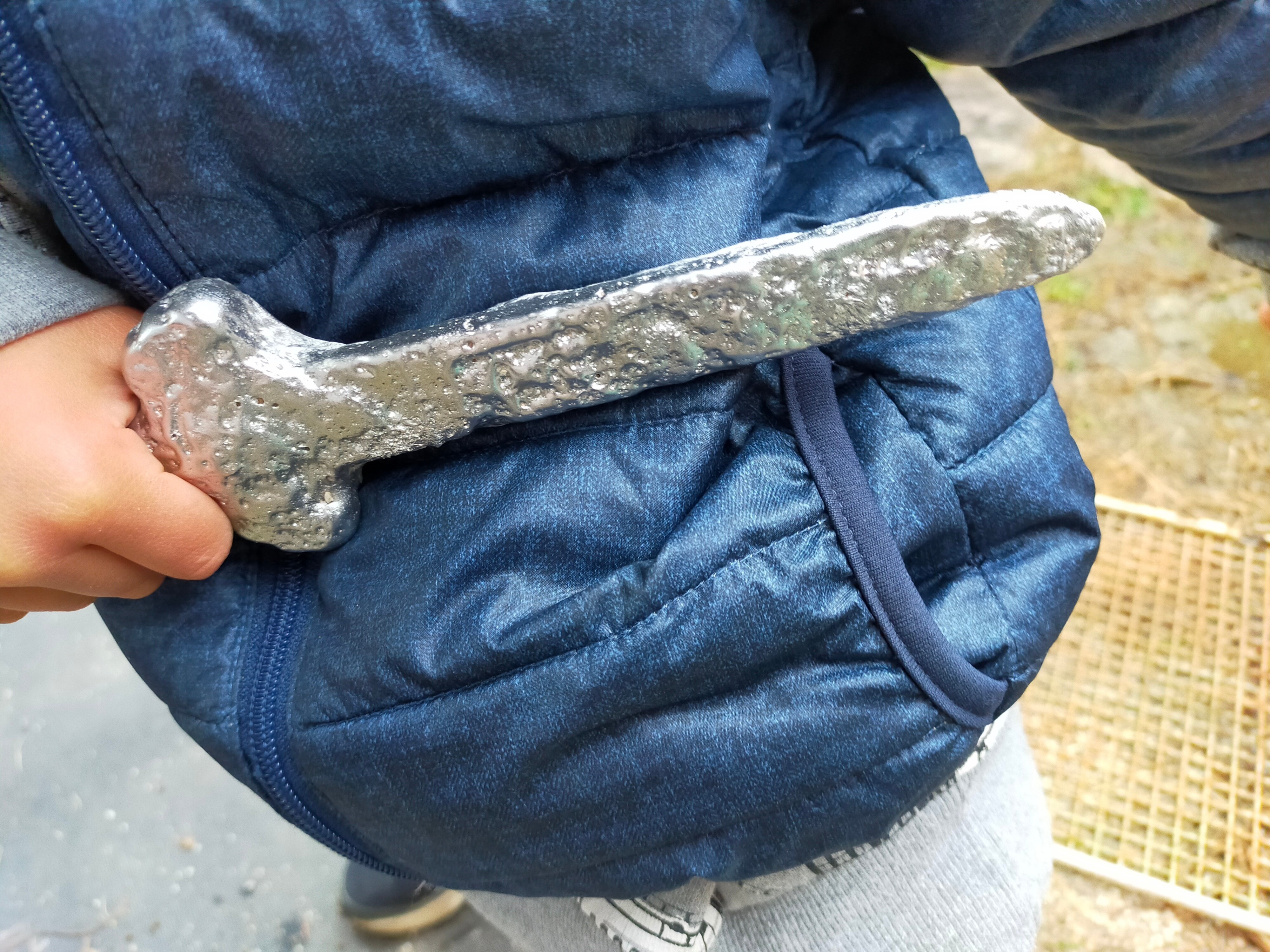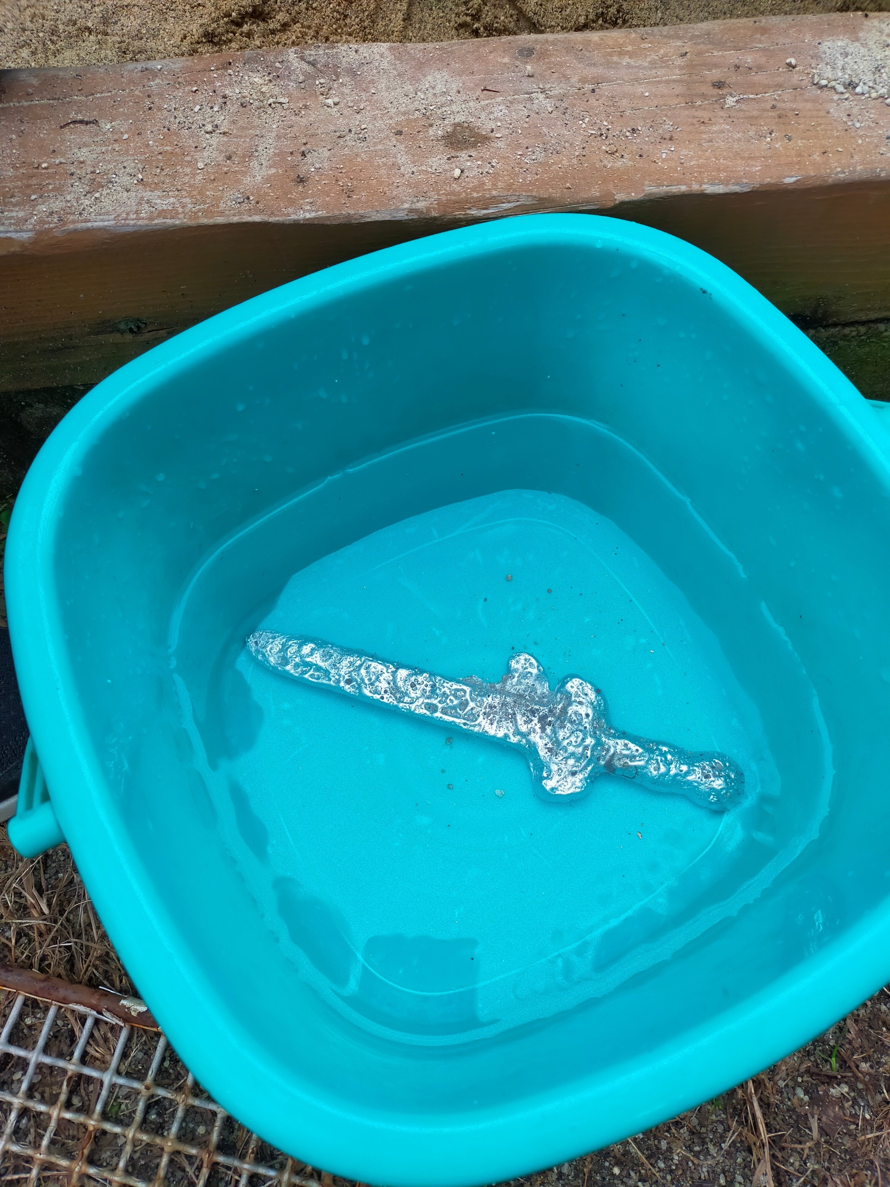 ②サバ缶の空き缶の中で アルミを溶かし(廃材やアルミ缶)